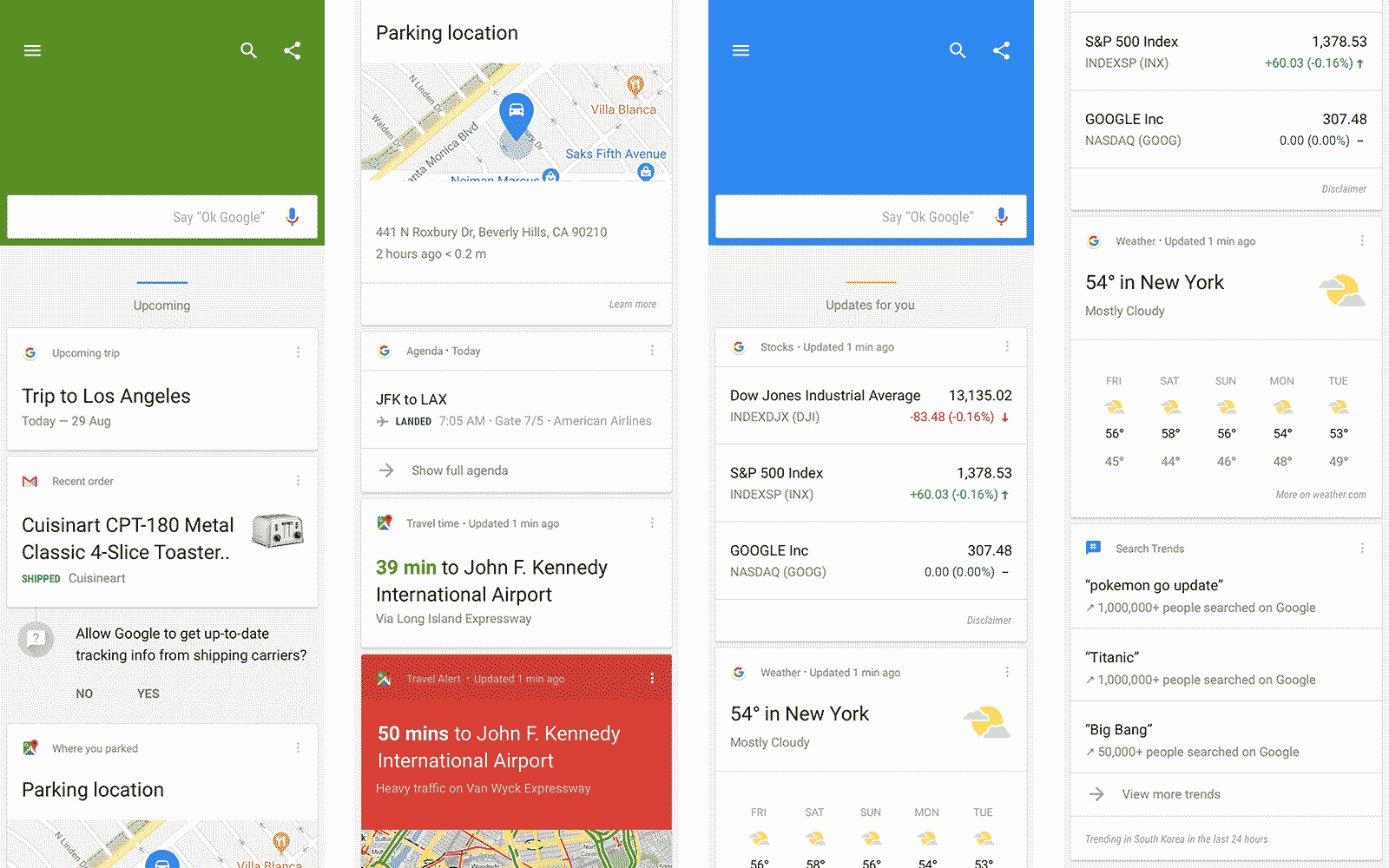 Google had collected a myriad of data from search, adwords, and gmail. Tasked to design an extensible design system that preemptively anticipated hyper relevant user needs— traffic conditions, news, business relationships, points from the game last night, reservation availability to favorite restaurants, your stock market trades, travel itineraries, and so on.