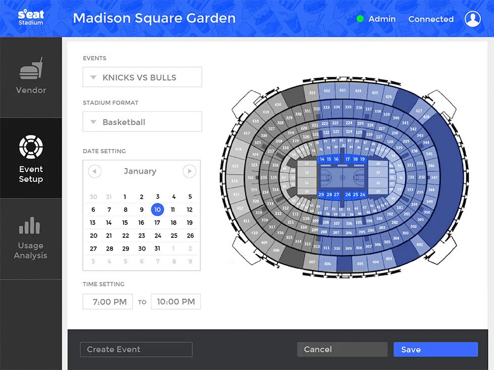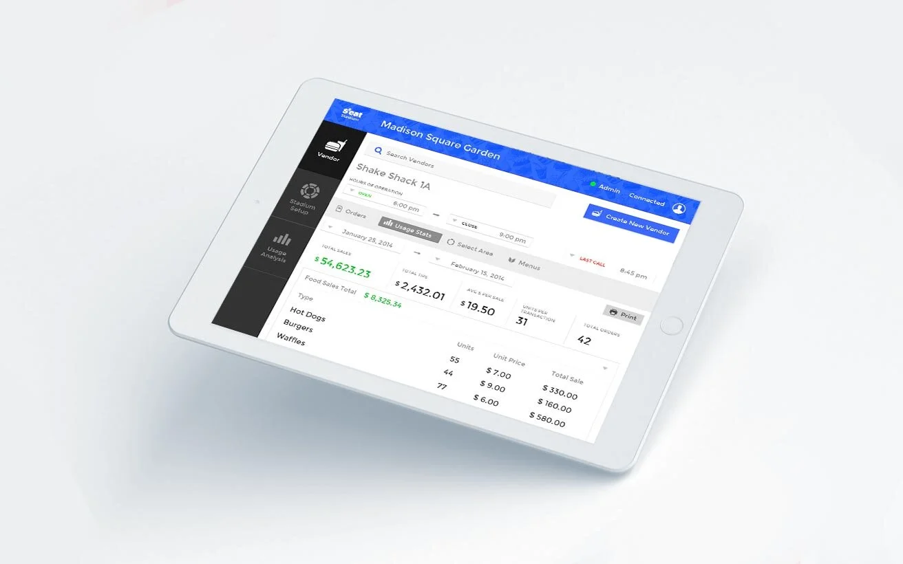 Never miss the game again. Design direction for food and beverage ordering app and POS system for stadiums.