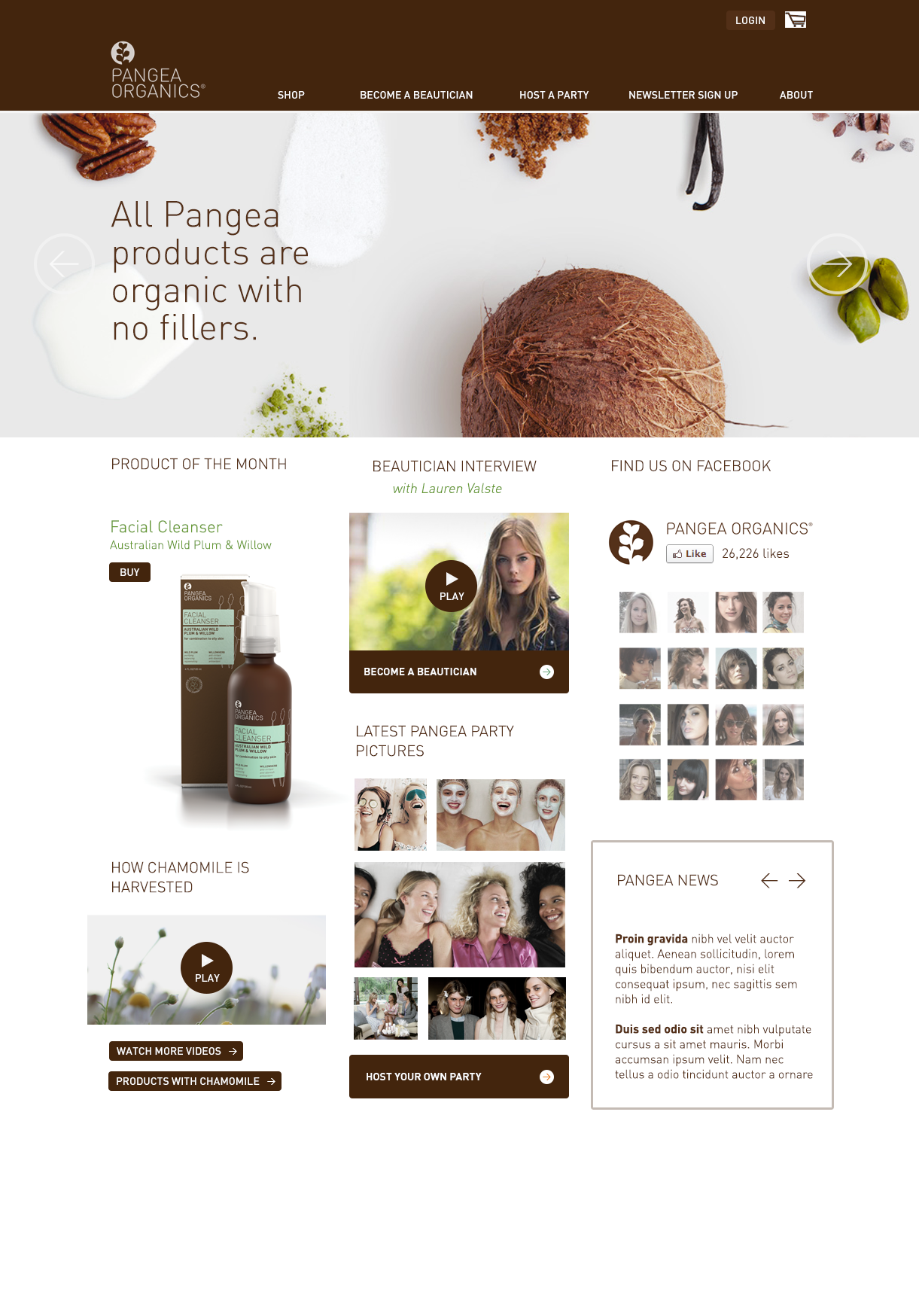 Ecommerce design direction for a sustainable skin and body care product catalog focussing on high-quality organic ingredients.